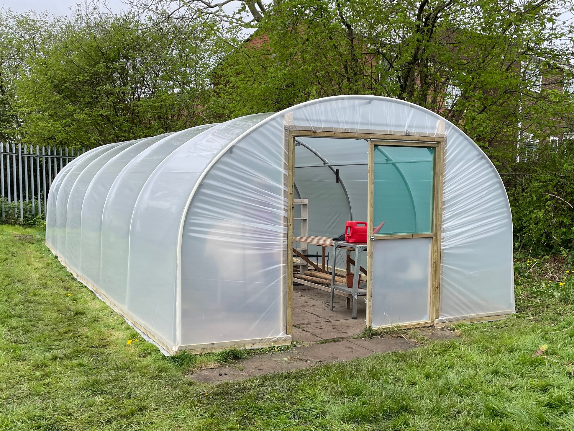 Our garden polytunnels are supplied as standard with a timber end frame with a dummy door at the rear end of the tunnel.
