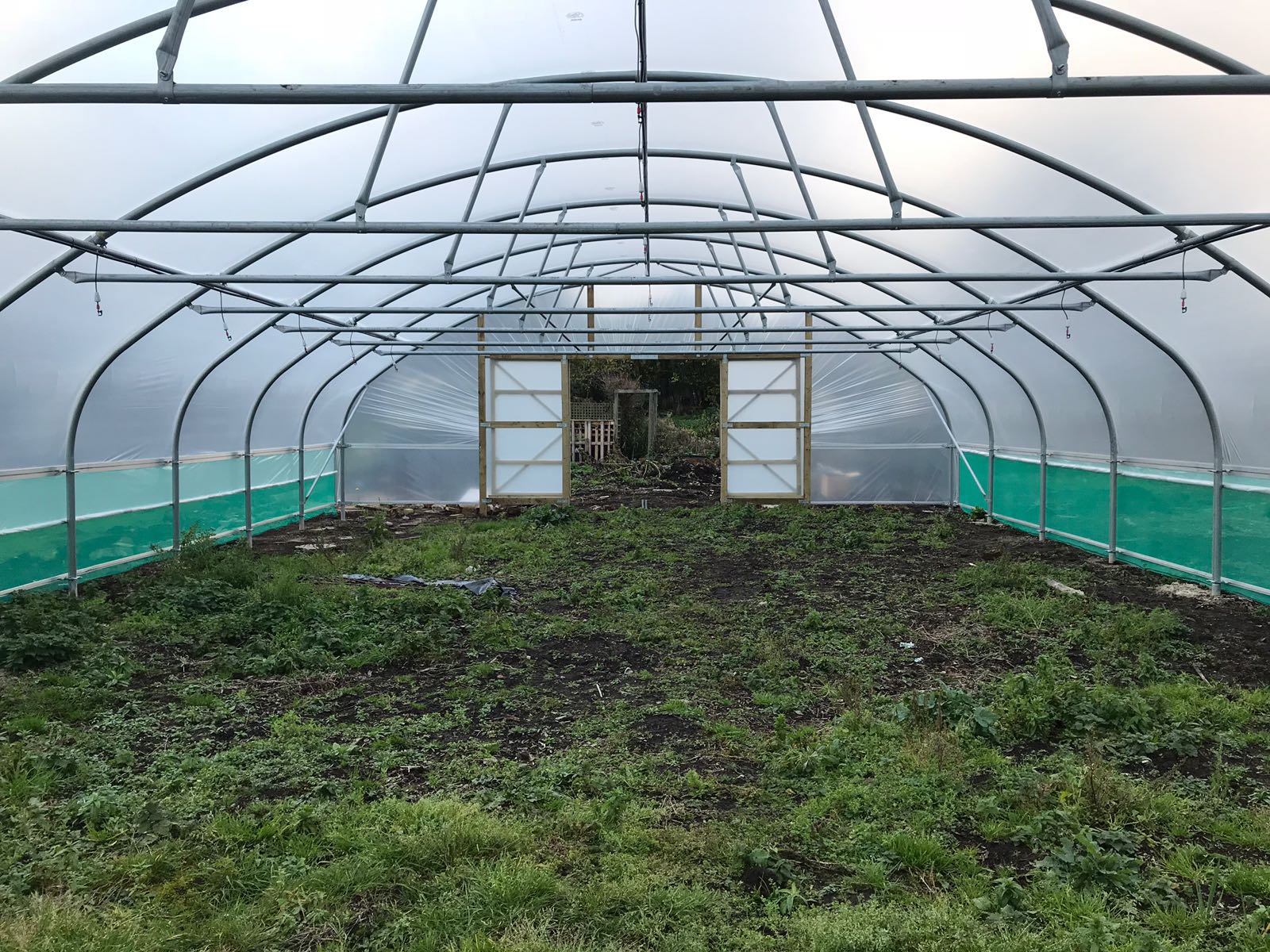 Why not choose to upgrade the double hinged doors to double sliding doors at one end of your polytunnel?